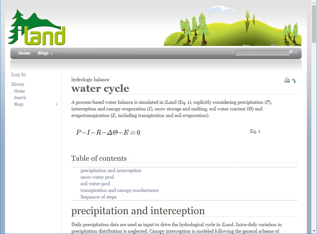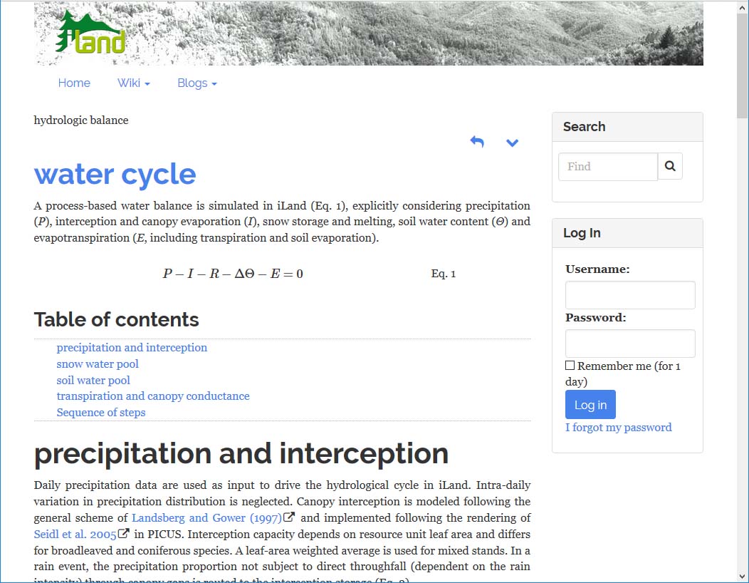 Scientific publications are a key factor of a usable model documentation, but alone insufficient. A complex ecosystem model includes much more process and implementation details which cannot be stuffed into research articles. But those details need to be somewhere, and hey - full text search would be awsome, too! So, quite naturally, we designed the iLand documentation to be online (this site).